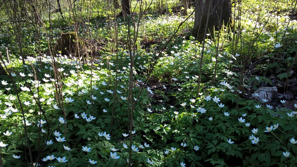 Konalasta löytyy vielä metsäplänttejä, joilla valkovuokot kukkivat.