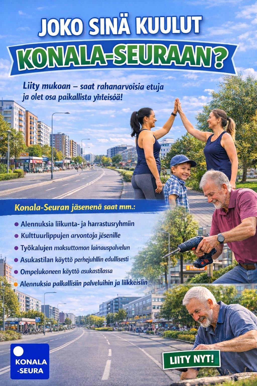 Konala-Seura on asukasyhdistys, joka toimii alueen asukkaiden hyväksi mm. seuraavasti:
