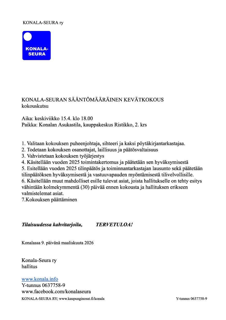 Konala-Seuran Facebook-sivuilta löydät lisää tietoa toiminnastamme ja ajankohtaisista tapahtumista
