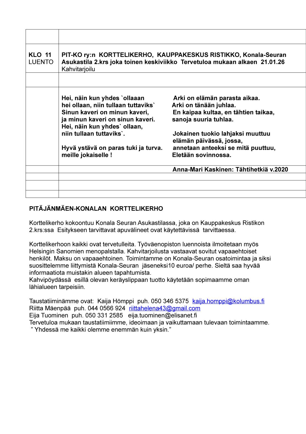 PITÄJÄNMÄEN - KONALAN KORTTELIKERHO